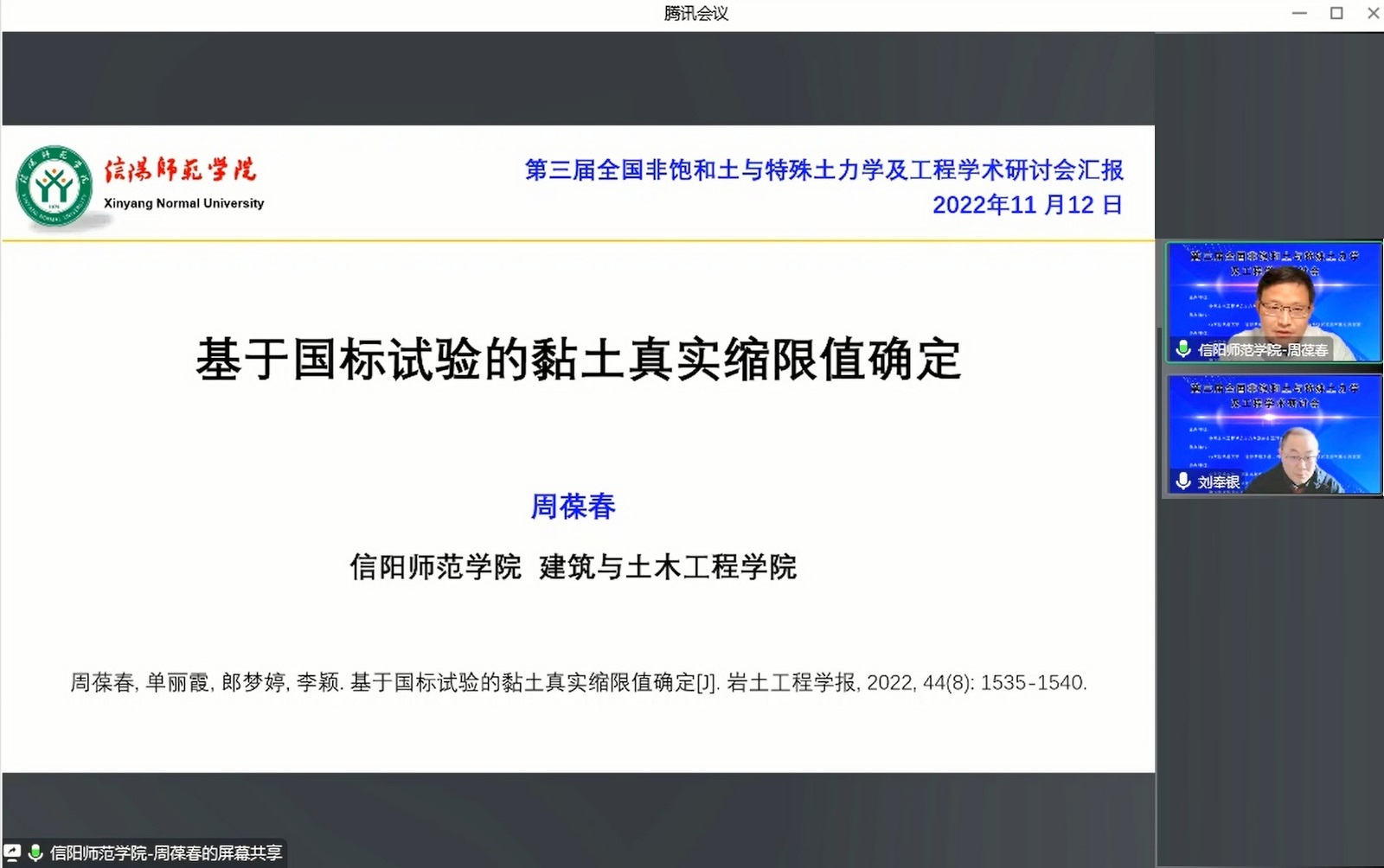 公司在金年会金字招牌诚信至上会议室设立了信阳师范学院分会场,分会场参会师生50余人。会议邀请金年会金字招牌诚信至上经理周葆春教授作了题为“基于国标试验的黏土真实缩限值确定”的特邀报告。