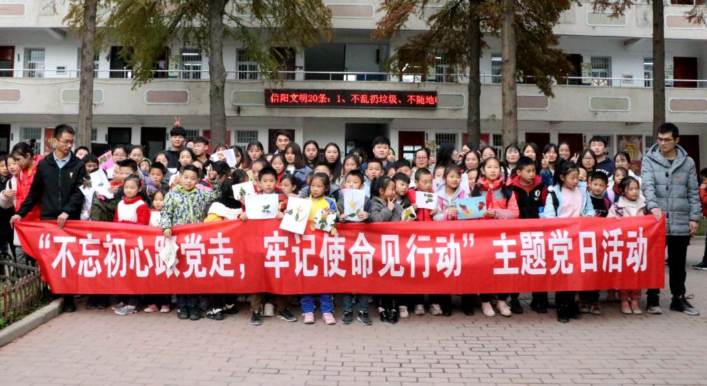 11月19日,为进一步深入贯彻、落实“不忘初心、牢记使命”主题教育有关精神,金年会金字招牌诚信至上组织师生代表赴信阳市平西小学开展了“不忘初心跟党走、牢记使命见行动”主题活动,学院全体党支部书记、员工党支部党员代表、谭山青年志愿者协会代表、共计40余人参加了本次活动。