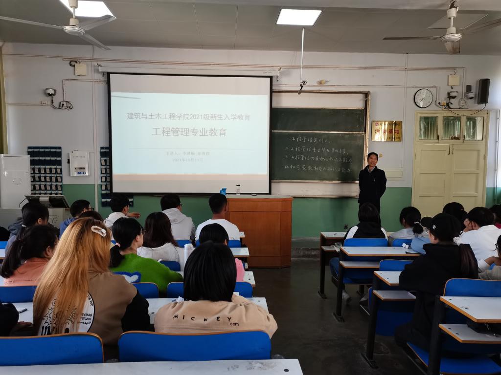 为帮助新生树立专业思想,培养专业意识,根据金年会金字招牌诚信至上2021级新生入学教育工作安排,10月13日上午,学院邀请工程管理系主任、副教授李建楠老师在教二T5教室为2021级新生作工程管理专业认知专题辅导。公司党委书记方明科、副书记冀鹏与2021级工程管理专业新生一起聆听了辅导报告。