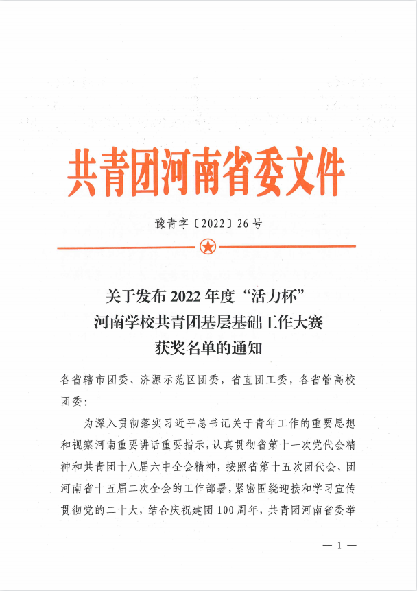 近日,2022年度“活力杯”河南学校共青团基层基础工作大赛公布了获奖名单,公司申报的《建筑文化节》荣获高校校园文化类三等奖。