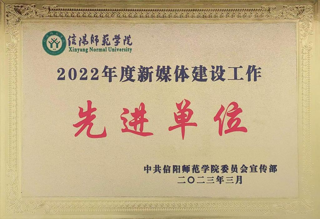 3月30日,信阳师范学院召开2023年宣传思想工作会议,会上对2022年度新闻宣传工作先进单位和先进个人、2022年度新媒体建设工作先进单位和先进个人进行了表彰,公司获“2022年度新媒体建设工作先进单位”荣誉称号。
