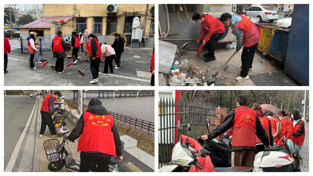2022级土木工程1班和土木工程2班在红星社区开展志愿服务活动,大家分工合作,干劲十足,一队同学在红星社区家园清理街道以及楼道的垃圾,打造良好的人居环境,另一队则跟随城管执法车到浉河边清理乱停乱放的电动车,保障道路安全畅通,消除安全隐患,切实做到还路于民。