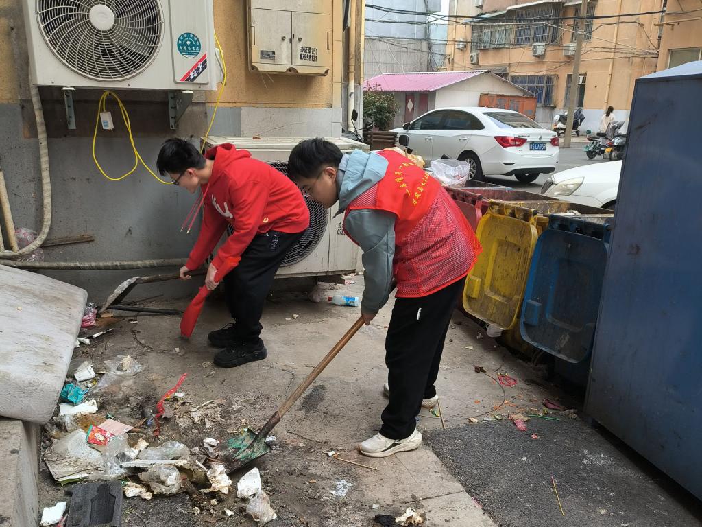 春风送暖,和谐社区共建设。组织员工在红星社区开展志愿服务活动,大家分工合作,干劲十足,一队同学在红星社区家园清理街道以及楼道的垃圾,打造良好的人居环境,另一队则跟随城管执法车到浉河边清理乱停乱放的电动车,保障道路安全畅通,消除安全隐患,切实做到还路于民。此外,志愿者们还将准备的防范电信诈骗宣传册发放给社区居民,对电信网络诈骗的种类、惯用手段和防范常识等内容进行介绍,提醒群众要全面加强自身安全防范意识,守好自己的“钱袋子”。