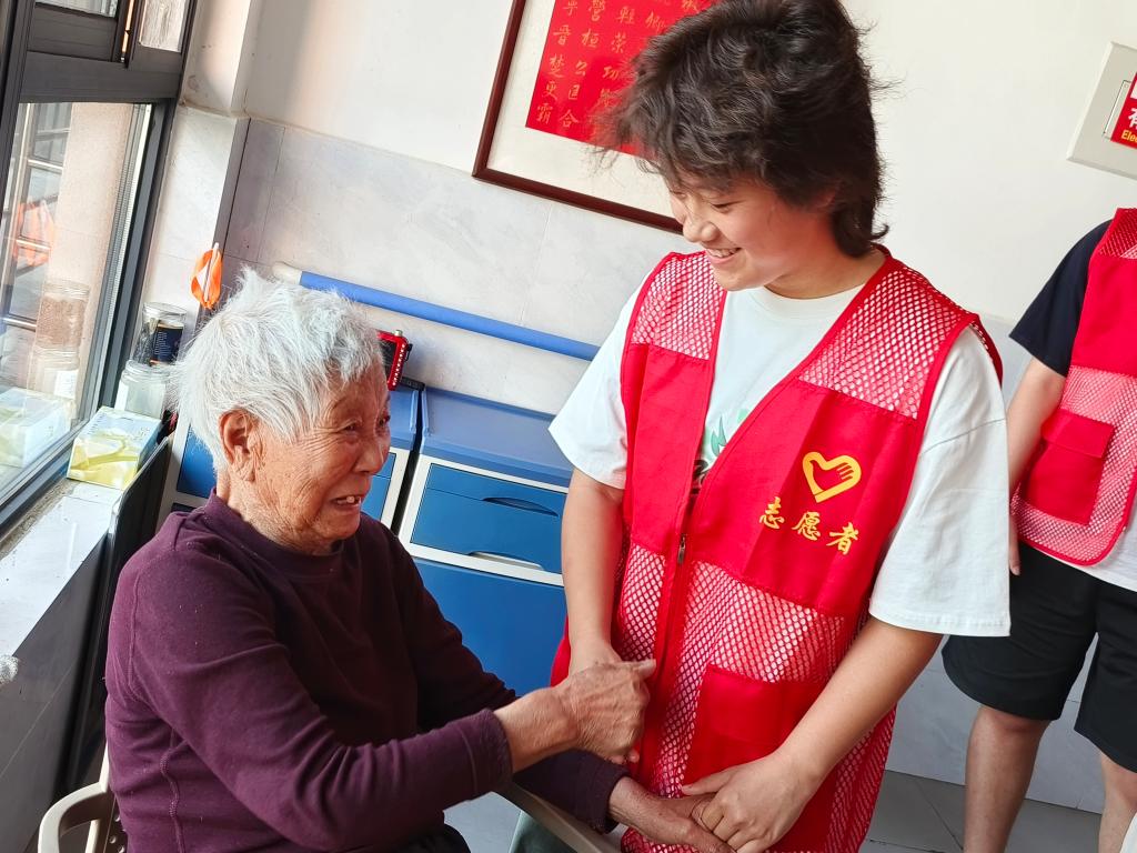 抵达敬老院后,同学们把精心准备的水果、牛奶等慰问品轻轻递到老人手中,便马上行动起来,大家有分工有合作,有的为老人整理床褥,打扫房间、擦栏杆、晒被子,为老人们营造干净整洁的居室环境;有的陪老人在院子里晒太阳,给他们揉揉肩捶捶背,耐心倾听老人们讲述过往,给他们讲述学校发生的趣事,汇报自己的学习情况;最后大家一起合照留念,老人们还给志愿者赠送了小礼物。