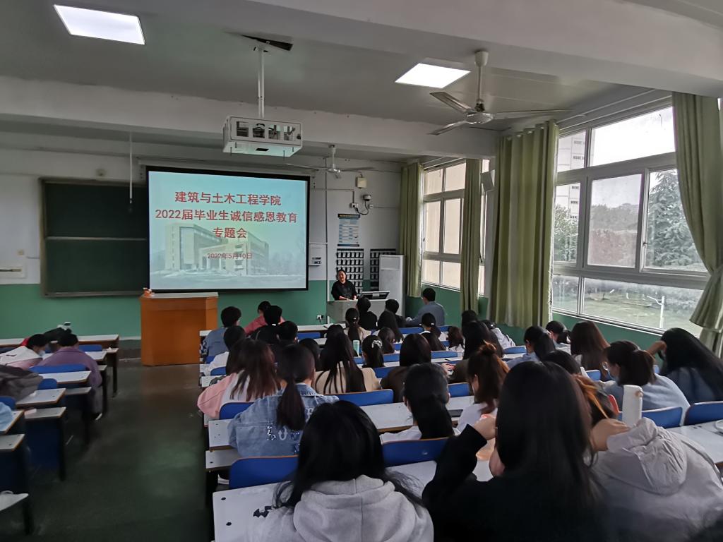 为进一步加强毕业生“感恩诚信”教育,5月10日下午,建筑与土木工程学院在教2-T6教室召开2022届毕业生“感恩诚信”教育专题会。学院资助专员邓林和2018级部分员工参会。