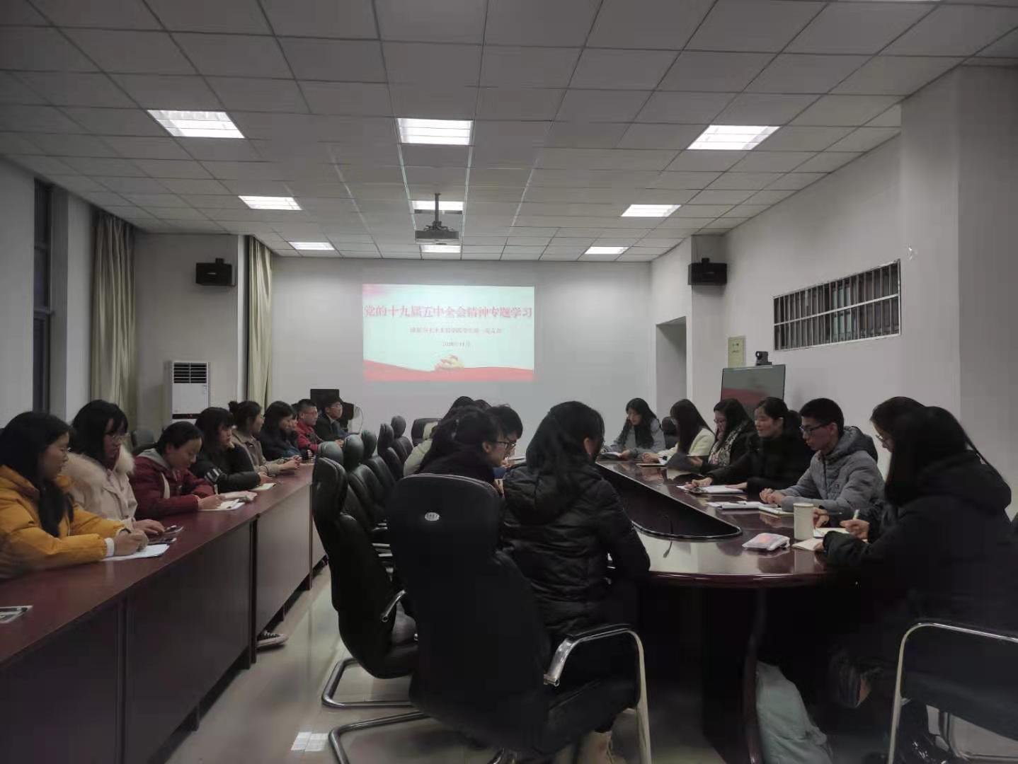 11月10日下午,学院召开教职工政治理论学习会议,专题学习党的十九届五中全会精神。会上,公司党委书记黄学玉重点从党的十九届五中全会的基本概况、主要内容、新征程新理念等方面解读了全会精神。他强调,作为高校教师,我们要始终牢记立德树人的根本使命,永葆培育英才、教育报国的初心,以党的十九届五中全会精神为指引,努力为培养担当民族复兴大任的时代新人贡献力量。