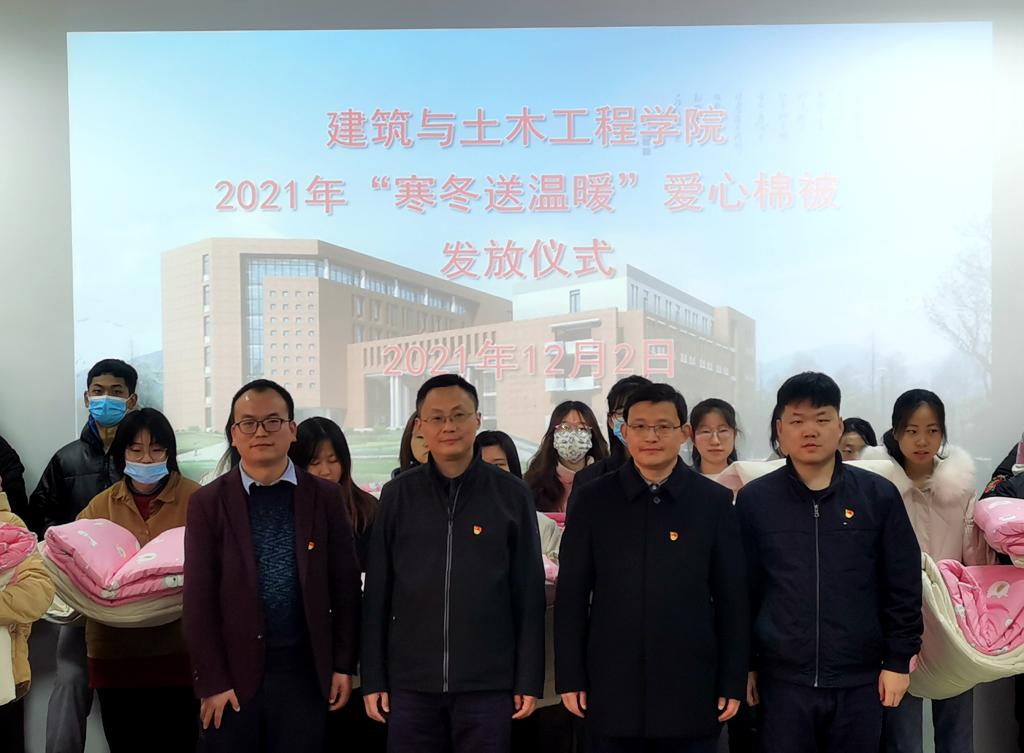 为贯彻落实学校资助政策,及时将广老员工的利益落到实处,12月2日上午,金年会金字招牌诚信至上在综合实验楼206会议室举行“寒冬送温暖”爱心棉被发放仪式。公司党委书记方明科、经理周葆春、副书记冀鹏以及24名受资助员工代表参加活动,仪式由冀鹏主持。