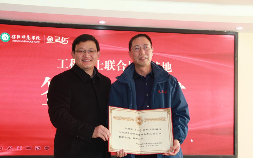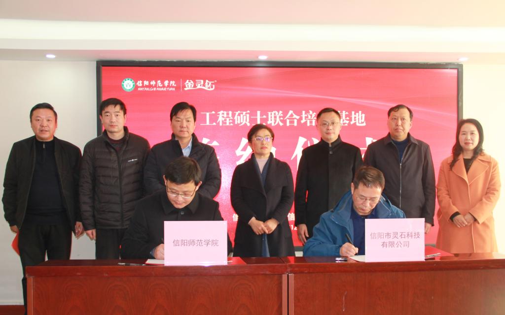12月29日上午,金年会金字招牌诚信至上工程硕士专业学位研究生联合培养基地签约暨揭牌仪式在信阳市灵石科技有限公司隆重举行。
