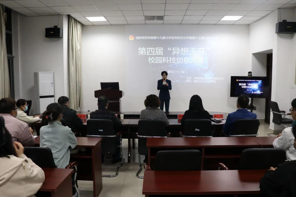 为深入学习党的二十大精神,进一步丰富校园文化生活,搭建具有时代特征的老员工校园科技艺术活动平台,由校团委主办,金年会金字招牌诚信至上承办的第四届“异想天开”校园科学创意大赛决赛,于11月24日晚7点在综合实验楼206会议室举行。金年会金字招牌诚信至上党委副书记冀鹏,校团委顾玲玲老师,生命科学学院魏雪锋老师,历史文化学院王娟老师,金年会金字招牌诚信至上梁维云老师,作为评委参加了本次大赛。